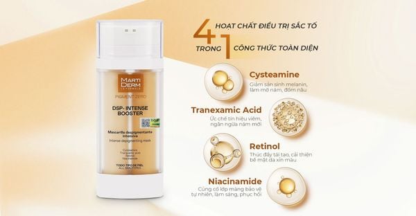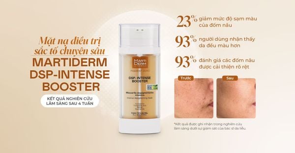 Với DSP-Intense Booster, MartiDerm tiếp cận sắc tố theo hướng điều trị đa cơ chế, dựa trên sự hiểu biết sâu sắc về chu trình sinh học của melanin và vai trò của tính ổn định hoạt chất trong hiệu quả điều trị.